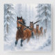 A herd of chestnut colored horses gallop through a breathtaking, snowy forest, their powerful movements creating a stunning contrast against the serene, snow-covered trees that envelop the scene in majestic beauty