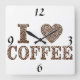 Show the world how you feel about your coffee with this awesome clock. "I LOVE COFFEE", c'est le café-out dans coffee beans. The numbers marking the quarters of each hour are written in black, to match the arms of the clock. However, the numbers and background are customizable.