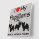 This custom "I Love My Three Papillons" clock est parfait pour anyone who loves three papillon dogs, just add with your own dog names.