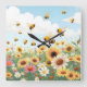 Horloge Carrée Illustration des abeilles mignons et des fleurs