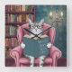 Horloge Carrée Image hilarante d'un chat lisant un livre
