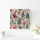Horloge Carrée Impasto Motifs de Noël rouge et vert Collage