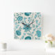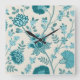 Horloge Carrée Jacobean Floral Lg Motif Teals sur Crème