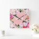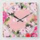 Horloge Carrée Jardin de roses roses à l'aquarelle artistique écr