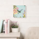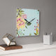Horloge Carrée Jardin floral, Arrière - plan bleu