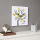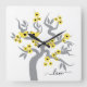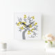 Perroquets jaune et gris horloge murale carrée en forme de cerisier sakura avec fleurs. Elle présente un arbre sakura gris ultime avec des fleurs jaunes illuminantes avec des cœurs noirs au centre et un couple de perroquets. Le mot "Amour" est écrit dans une police de style script.