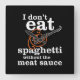 Horloge Carrée Je ne mange pas des spaghetti sans sauce à viande