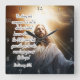 Horloge Carrée Jésus : Fort, Courageux, Dieu Avec