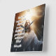Ce visage inspirant de l'horloge présente Jésus-Christ en regardant le ciel avec des mains tendues, baignées de lumière éclatante. La puissante citation de "Deutéronome 31:6" déclare : "Soyez forts et courageux. N'ayez pas peur ou ne soyez pas terrifiés à cause de l'Éternel, votre Dieu, va avec vous; il ne vous quittera jamais, ni ne vous abandonnera". Des chiffres noirs marquent les heures, mélangeant l'assurance divine avec un rappel quotidien de la foi et de la présence inébranlables.