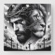 Cette puissante horloge murale carré fusionne artistiquement les images de Jésus portant une couronne d'épines et le majestueux Lion de Juda. Sous eux, des silhouettes de croix se dressent contre un ciel nuageux, créant un symbole profond de foi, de sacrifice et de rédemption. Ce garde-temps saisissant sert d'accent religieux significatif pour n'importe quel espace.