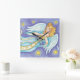 Horloge Carrée Joli Noël, Ange Musicien Jouant de la Corne