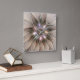 Horloge Carrée Joyeuse Fleur Abstrait Beige Brown Floral Fractal