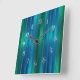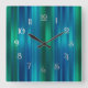 Horloge Carrée Jupe d'arbre rayé bleu et vert