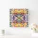 Horloge Carrée Kaleidoscope retro coloré psychédélique Abstrait