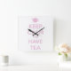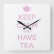 Horloge Carrée Keep Calm and Have Tea Pink on White