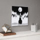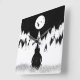 A black and white illustration of a kiwi bird sitting in a forest at night. The bird is looking up at the sky, wishing kicould fly.