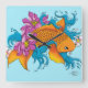 Poisson koi aux fleurs de lotus et aux fleurs de cerisiers tout autour dans l'eau dessinée dans un style tatouage.