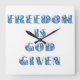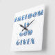 Horloge Carrée La liberté est donnée par Dieu, bleu