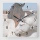 Une paire de beaux chevaux qui se montrent amoureux dans ces horloges merveilleuses. Choisissez votre style carré ou rond. Dans tous les cas, le choix est beau dans un décor rustique.