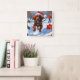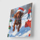 Un beau Red Setter irlandais parcourt joyeusement le paysage enneigé, portant un casquette de Noël rouge et festif. Cette scène hivernale vibrante met en valeur le manteau rouge soyeux de la race, son esprit énergique et sa nature affectueuse tout en célébrant la chaleur et la magie de la saison des fêtes. Un design animé et plein de charme festif.