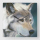 Horloge Carrée Le loup blanc avec le jaune observe l'horloge
