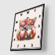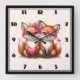 Une horloge avec une adorable image de 2 renards portant des lunettes de coeur mignonnes teintées roses. Décoré avec des accents de coeur.