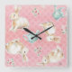 Horloge Carrée Les Patterns de Springtime Bunnie
