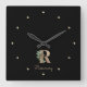 Horloge Carrée LETTRE MONOGRAPHIQUE BOtanique Élégante R