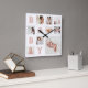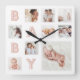 Affichez les photos de votre bébé avec notre horloge blanche de collage photo pour bébé design et moderne. Le design comprend une mise en page de collage de la grille de neuf photos pour présenter les photos spéciales de votre bébé. "Baby" est affiché dans la conception moderne de lettres en bloc rose dans la disposition de la grille. Une tenue spéciale à afficher dans la pépinière de votre bébé.