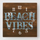 Horloge Carrée Libellé de vibes de plage sur des planches en bois