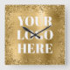 Bordure de parties scintillant carré arrondie en or Faux et art numérique en feuille métallique (imprimés comme une photo sur ces horloges murales carrés). Il y a de la place pour un nom ... vous pouvez ajouter du texte le long du bord de votre image de logo. Cet art numérique fonctionne le mieux avec une image de logo PNG avec des zones transparentes.