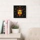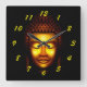Cette merveilleuse horloge murale carré a l'image dorée souriante de Bouddha sur arrière - plan noir. C'est un cadeau parfait pour les amoureux de Bhuddha.