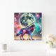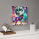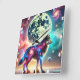 Horloge Carrée Loup cosmique avec éléments galactiques et lune