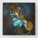 Luciole à vapeur avec ailes bleues transparentes et ampoule verte sur arrière - plan usé, marron, texturé. Style Steampunk.