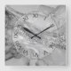 Horloge Carrée Luxury Silver & White Flowing Marble