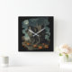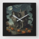 Horloge Carrée Maison Haunween avec Citrouilles et Pleine lune