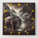 Horloge Carrée Majestic Elephant Boire par Cascade sereine