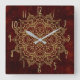 Horloge Carrée Mandala rouge vin profond et glamour doré moderne