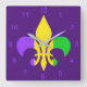 Horloge Carrée Mardi gras vert Yellow Purple Fleur-de-lis