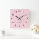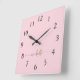 Horloge carrée personnalisée avec monogramme minimaliste rose pastel et nom en écriture dorée. Ces créations présentent votre prénom dans un joli style manuscrit avec une typographie à empattements en couleur or sur un fond rose pastel ou rose blush clair. Très facile à personnaliser. Cadeau de pendaison de crémaillère élégant et féminin, également pour un anniversaire, une fête de fiançailles, la fête des mères, un mariage, une fête d'anniversaire des 16 ans et une baby shower, une remise de diplôme. C'est pour la fille qui aime les choses uniques et élégantes qui brillent.