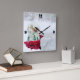 Horloge Carrée Merry Christmas et Santa Snow Globe