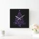 Horloge Carrée Métallc Purple Stars Christmas Tree Elegant Black