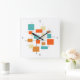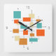 Horloge Carrée Mi-siècle Moderne Rétro Orange Turquoise Carré
