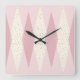 Horloge Carrée Mid Century Modern Pink Argyle Square Wall Clock