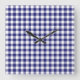 Horloge Carrée Midnight Blue and White Checked Gingham Pattern