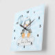 Horloge Carrée Mignon bébé manchot sur un nuage