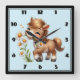 Horloge Carrée Mignonne Pony Mange Manger Des Marguerites