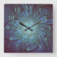 Horloge Carrée Moderne Abstrait tendance Fleur bleue Fractal Art