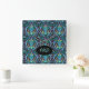 Horloge Carrée Moderne Damask Art Déco Noir Turquoise Bleu Nom