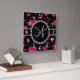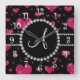 Horloge Carrée Monogram hot pink glitter hearts black diamonds